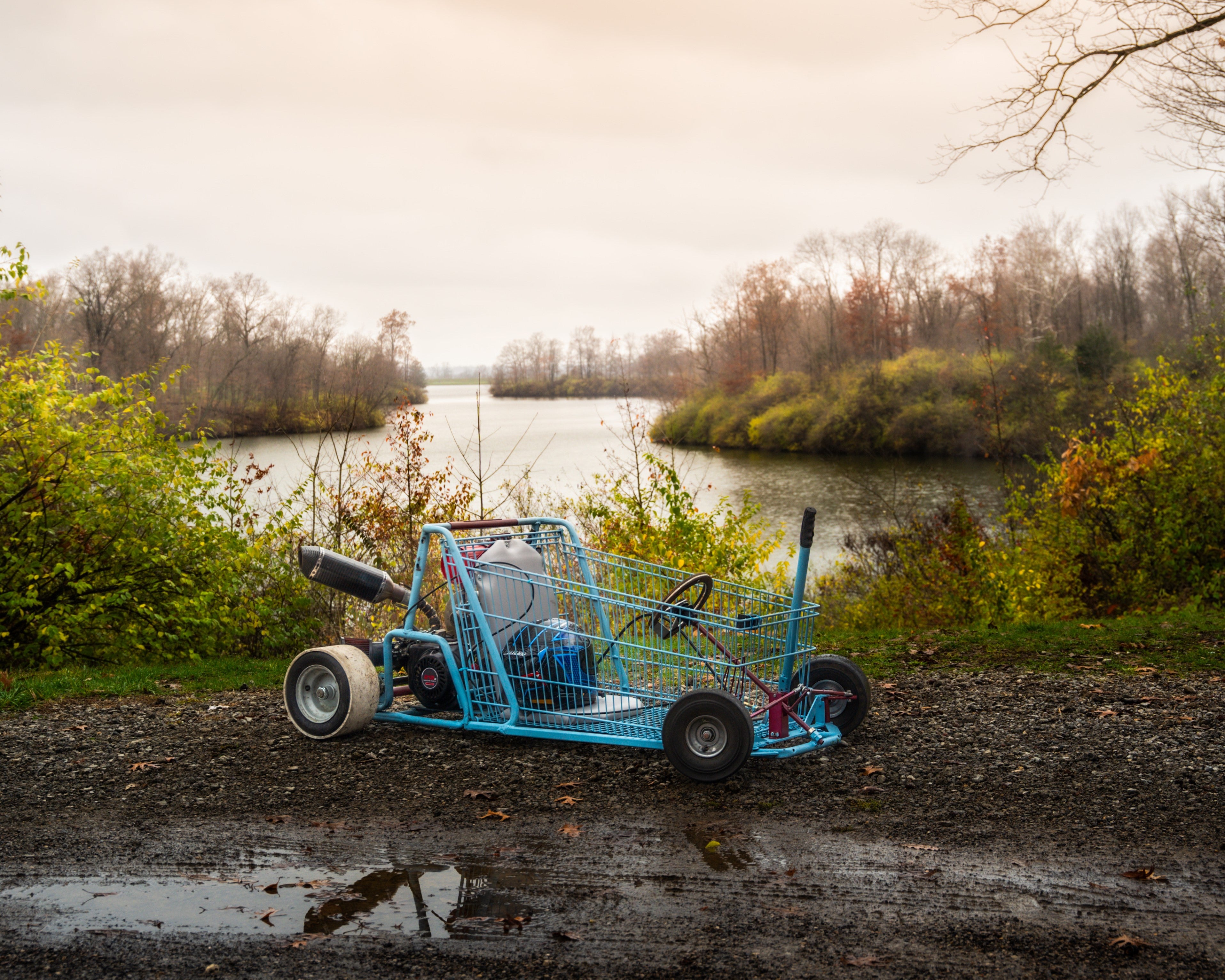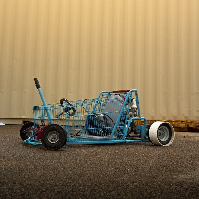 The original Shopdrifter has been a dream for as long as I can remember. Once enrolled at the University of Dayton for Mechanical Engineering, I started working in the wood/metal shop at my university called the Makerspace. Within this space, you have access to multiple levels of woodworking and metalworking equipment to help you create whatever projects you can imagine, whether they be for school or personal. After discussing possible projects with a fellow facilitator, I drafted the idea of a shopping cart go-kart; something I had dreamed of since I worked at a grocery store. When he told me that I could not do it, I took it as a challenge to make my dreams a reality